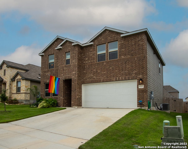 Great move-in ready newer construction (2019) home with numerous upgrades! Light and bright with an open floor plan perfect for entertaining and everyday living. Kitchen has gorgeous white cabinets and quartz counters with stylish brushed brass fixtures, pulls and lighting, walk-in pantry, wood look luxury vinyl floors downstairs, and quality top down/bottom up blinds throughout the home. The backyard is privacy fenced and includes an oversized covered patio with plenty of lush green lawn for play! Other features include a dedicated study/office down, an ample second living up, 2 Nest thermostats, owned alarm system, and upgraded lighting throughout. Walk-in closets for each bedroom. Convenient SW San Antonio location just inside of Loop 410. Why wait for new construction when this beauty is available now?